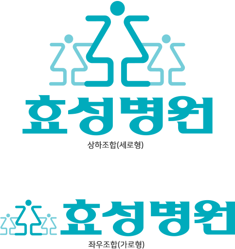 그린과 사이언 계열의 컬러로 희망적이고 진취적인 미래건강의 진정한 불꽃이 되고자 하는 효성병원의 이념 상징