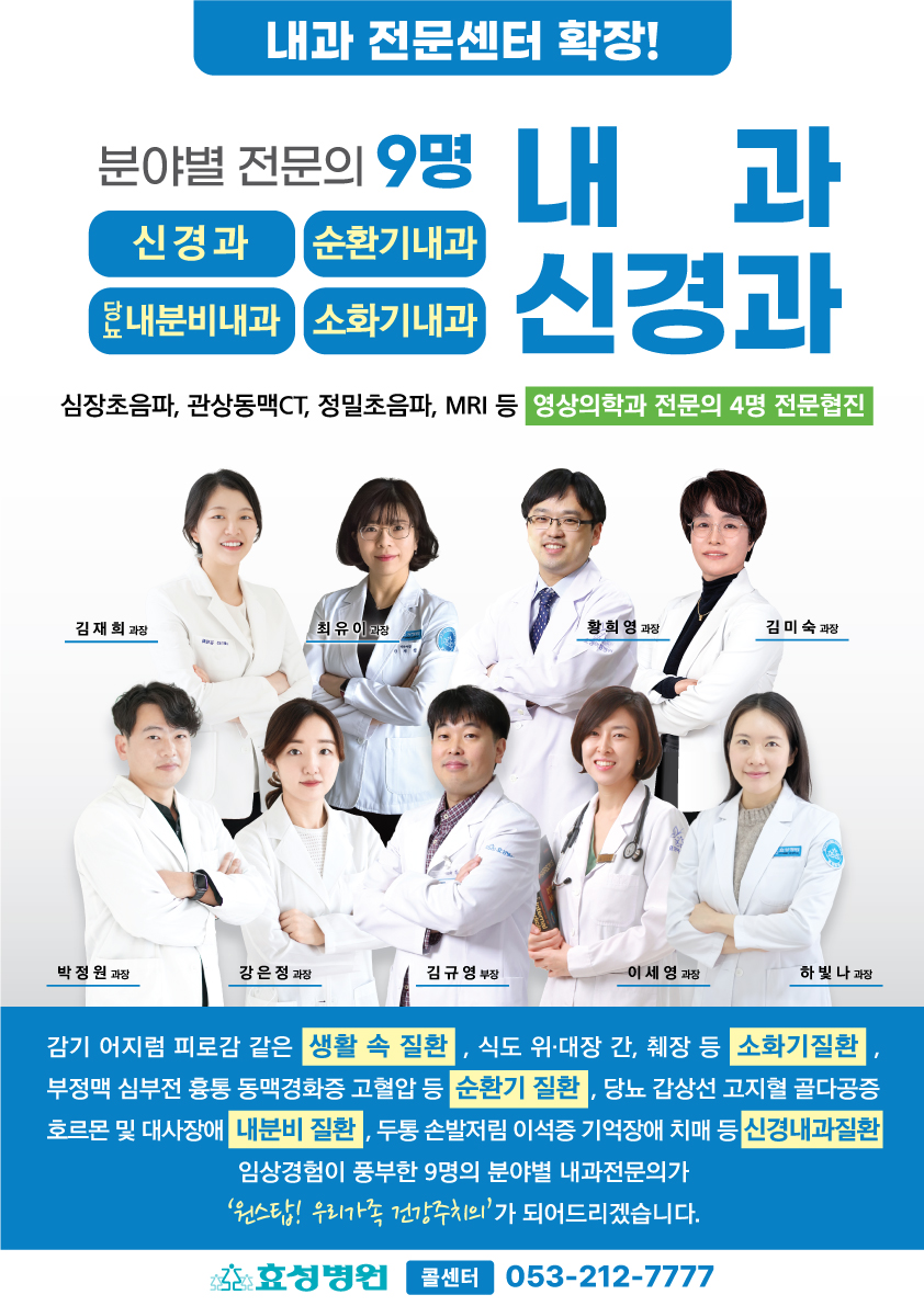 분야별 전문의들이 체계적 협진을 통해 양질의 의술(醫術)과 인술(仁術)로 몸과 마음까지 치유해드립니다.