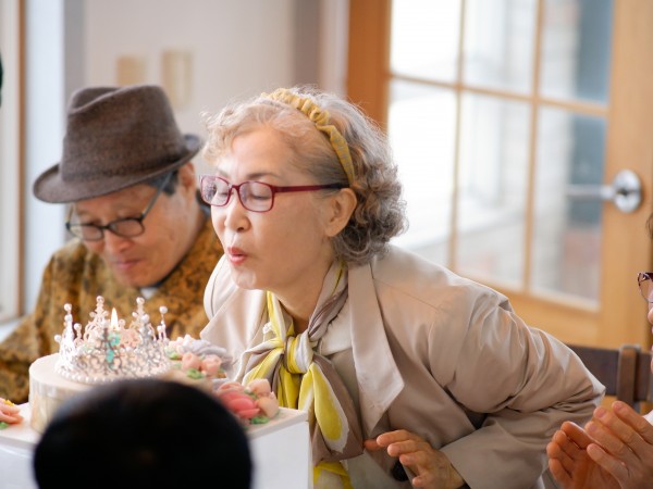신나는 분위기속 큰이모를 축하하는 핵심요소중 하나인 케이크를 큰이모께서 초를 부는 행복한 순간을 캐치하였습니다!