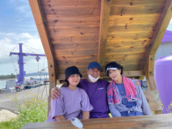 [사연] : 첫번쨰 사진은 전남 신안 보라 섬에 갔을 때 찍은 사진 입니다. 보라색 옷을 입고가면 입장이 무료라길래 저희 가족 단체로 보라색 옷을 맞춰 입었는데 어떤가요? 귀여운가요?