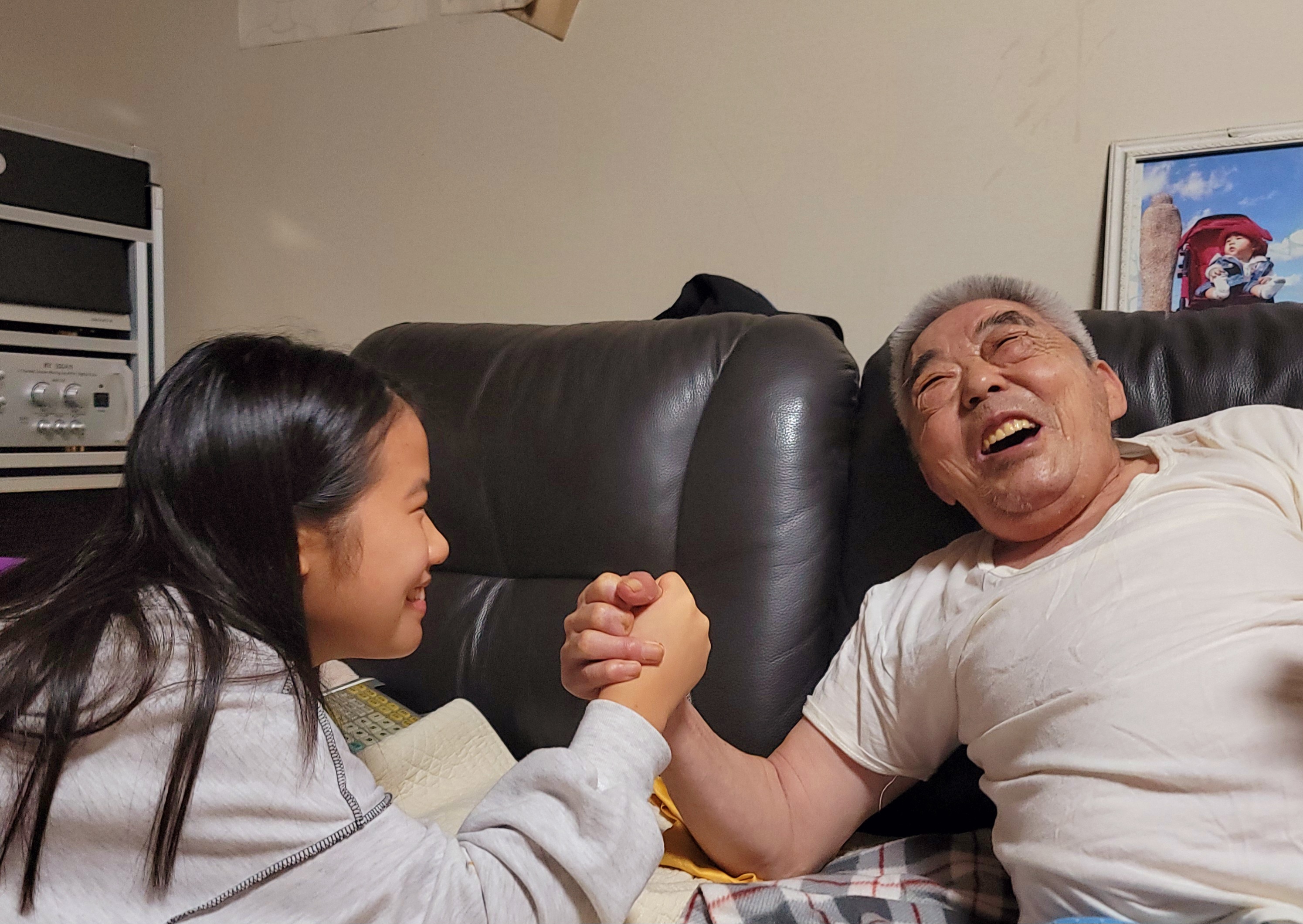 [사연] : 손녀와 할아버지와의 팔씨름에 손녀의 힘에 깜짝 놀라시는 할아버지의 행복한 미소