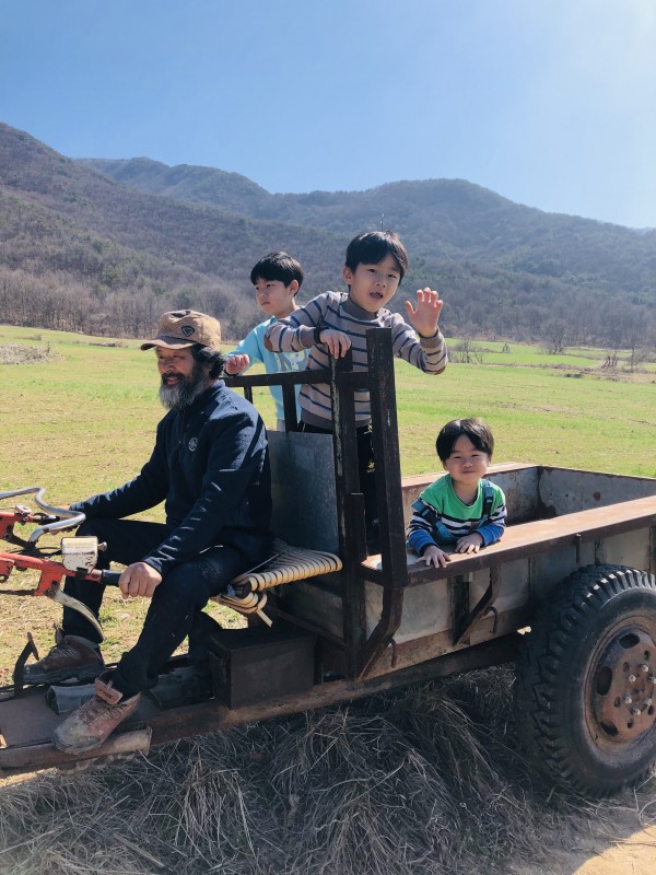 첫번째 사진: 친정부모님께서 깊은 산골로 이사를 가셨어요. 자주 못 보는 딸과 손주들이 그리우신 아버지는 늘 이벤트를 생각하세요. 사진 속 날은 도시에 사는 손주들에게 경운기를 태워주시고 동네 한반퀴를 도셨지요. 처음 타는 경운기가 재미있어요~