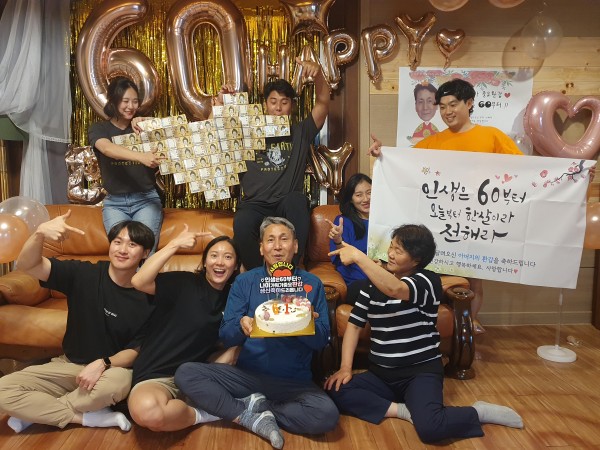 새로운 인생 시작: 삼남매를 키우시느라 인생을 즐기지 못하셨는데 이제는 전보다 더 행복하게 지내셨으면 합니다. 사진 속에는 보이지 않지만 뱃속에 있는 제 아들까지 3대가 모인 아빠의 환갑잔치입니다.
