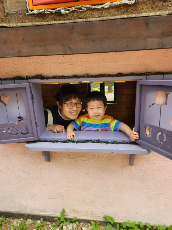 [사연] : 엄마와 아들 사진은 아침고요수목원에서 찍었습니다. 그곳 자그마한 언덕에 그림 같은 집이 있어서 그곳에 들어가 아들과 찰칵!