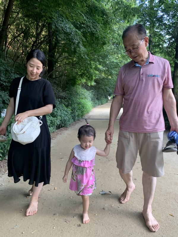 [사연] : 할아버지, 할머니를 무척이나 좋아하는 저희 딸은 할머니가 하는 건 뭐든 따라하고 싶어해요. 할머니가 맨발걷기를 하시니 저희 딸도 신발을 벗고는 “엄마랑 할아버지도 벗어!” 하더군요. 발바닥 더러워지는 것이 싫어서 평소에 절대 맨발 걷기를 안 하시는 할아버지께서도 그런 손녀가 귀여우셨는지 활짝 웃으시며 얼른 신발을 벗으셨답니다. 할아버지, 엄마 건강도 챙겨주는 저희 딸. 효녀 맞죠?^^
