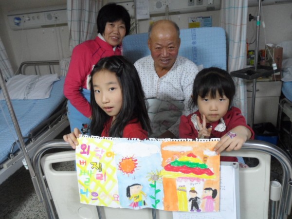 1,3세대공감 행복사진 공모전 | 할아버지 빨리 나으세요~ 페이지 정보 작성자 홍연오 작성일15-10-23 23:42 조회20,625회 댓글0건 관련링크 이전글 다음글 목록 본문 즐거운 추석날 외할아버지가 갑자기 병원에 입원하셨어요. 벌써 한 달째 병원에 계시답니다. 동생 연수와 함께 예쁜그림 그려서 할아버지께 갔습니다. 금방 힘내서 퇴원하시면 좋겠습니다. 댓글목록 등록된 댓글이 없습니다. 이전글 다음글 목록