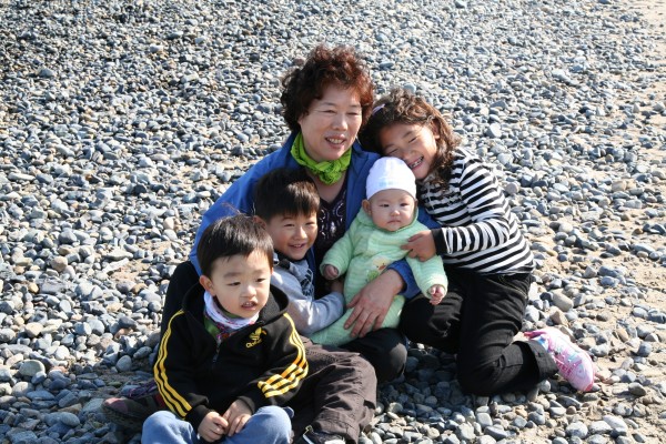 [행복사연] : 할머니와 손자손녀들이 한데 모여 밝게 웃고 있는 모습입니다 행복하네요^^