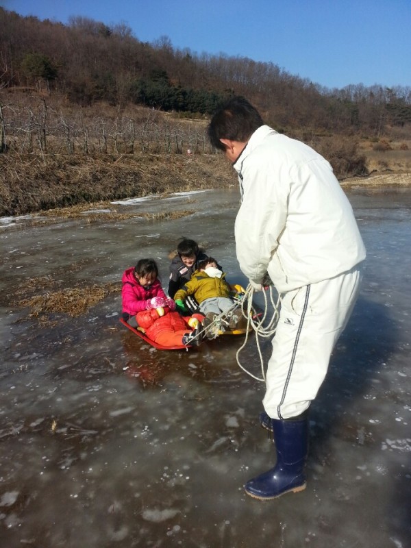 얼음썰매에 손주 4명을 태워 한꺼번에 끌어주실 수 있을만큼 할아버지는 건강하시다.