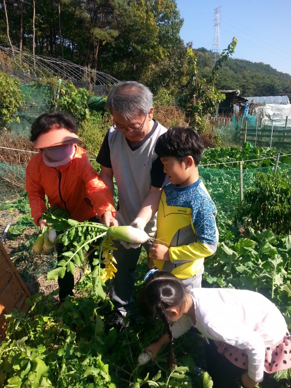 [행복사연] : 할머니 할아버지께서 아이들에게 직접 기른 농작물 수확하는 방법을 가르쳐 주고 아이들은 할머니 할아버지 말씀대로 진지하게 따라하며 열심히 하는 모습이 아름답게 보였습니다. 앞으로 할머니 할아버지에게 항상 웃음을 드릴수 있도록 많은 시간을 아이들과 함께 공유할 수 있도록 해야되겠다고 다짐을 해보는 시간이었습니다.