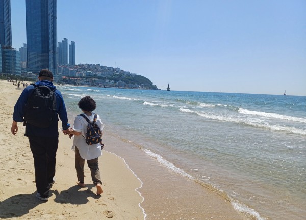 사진은 저희 친오빠와 엄마가 함께 손을 잡고 부산 해운대 바다를 걷고 있는 장면입니다. 사실 저희 가정은 친오빠가 발달장애를 지닌 장애인 가정입니다. 그럼에도 불구하고 가족간에 화목하며 사이가 좋아서 서로 잘 지내고 있습니다. 사진 내용은 아빠는 개인사정상 안 가셨고 엄마, 친오빠, 저 3명이서 최근 부산 해운대에 가서 저의 스마트폰을 통하여 엄마와 친오빠가 해운대를 걷고 있는 모습을 찍은 모습입니다. 친오빠가 바다를 너무나도 좋아해서 계속 가고 싶어했었는데 마침 가족 다 시간이 맞아서 가게 되었고 친오빠랑 엄마가 손을 잡고 사이좋게 그리고 행복하게 바다를 걷고 있기에 그 모습을 찍게 되었습니다. 언제나 모든 이들의 가정에도 건강과 행복이 넘쳐나기를 소망합니다.