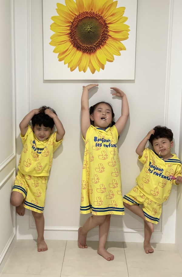 19개월 터울로 태어난 우리 삼남매, 어릴 때만이라도 똑같이 예쁜 옷 입혀보고 싶은 엄마 마음에 이렇게 깜찍한 단체샷을 남겼어요. 세 아이가 똑같은 옷을 입고 나란히 앉아 있는 모습이 너무 귀엽고 사랑스러워서 꼭 간직하고 싶은 소중한 추억입니다.