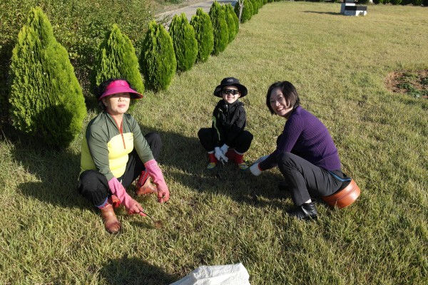 할머니,이모할머니와 함께 할아버지 산소에 갔어요.