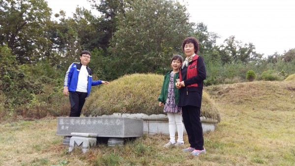 내가 태어나기 전에 돌아가신 할아버지 산소에서 할머니랑 오빠랑 사진을 찍었다어요.
