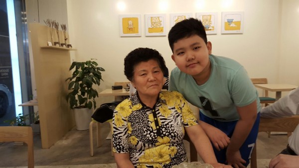 할머니 옆에 붙어서 사진을 "찰칵"~ 할머니께서 손자 키가 훌쩍 자랐다고 매우