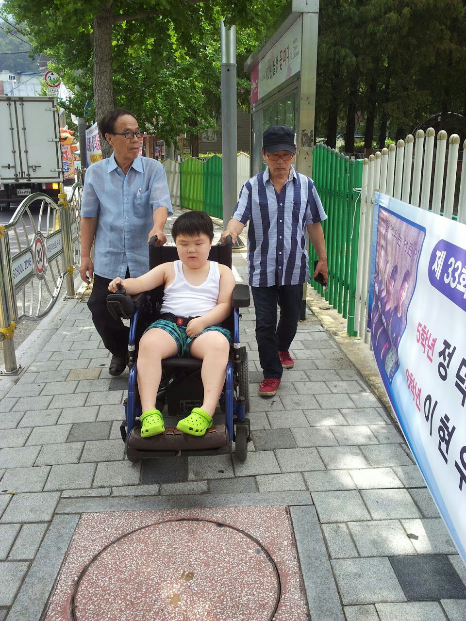보행시기를 5년여 거치고 이제 작은 휠처를 외할아버지에게 선물을 받게 되었습니다.