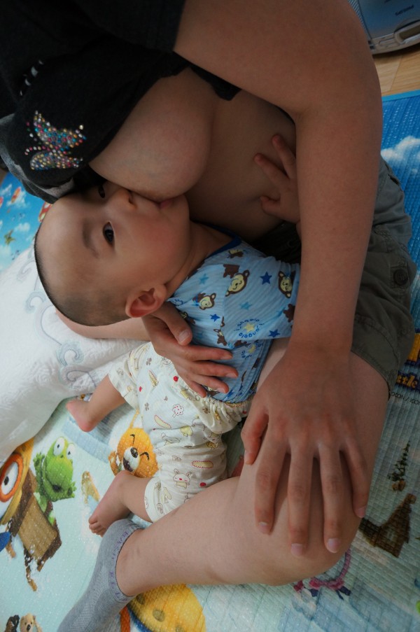 밤늦게 태어나서 병원에서 두번 젖을 물어보고 집으로 함께 와서부터는 그야말로 전쟁이었죠.GB스쿨을 들으며 모유수유에 대한 열정이 더 넘쳐났던 저는 어떻게든 젖을 물리려고 했었고 녀석은 힘드니까 분유를 내놓으라고 앙앙거리고...^^;;; 하룻밤을 괴롭혀서 그 다음날 기절한 듯이 하루종일 자는 녀석을 보며 좌절하기도 했었죠. 또 뒤늦게 설소대가 짧다는 걸 알고는 얼마나 놀랬던지...그래서 젖을 못 무나 싶어서 또 얼마나 안고 울었던지...다행히 아빠도 설소대가 짧지만 잘 먹고 잘 말한다는 걸 알고 수술은 하지 않았지만 더 깊숙이 물도록 몇번이나 물리고 또 물리고 했었어요. 거기다 분유는 소화를 잘 못해 트림을 하고도 계속 뒤척이는 녀석을 보고 정말 눈만 뜨면 젖을 물렸던거 같아요. 지금 생각하면 그때는 젖이 잘 나오지도 않을 때였는데...^^