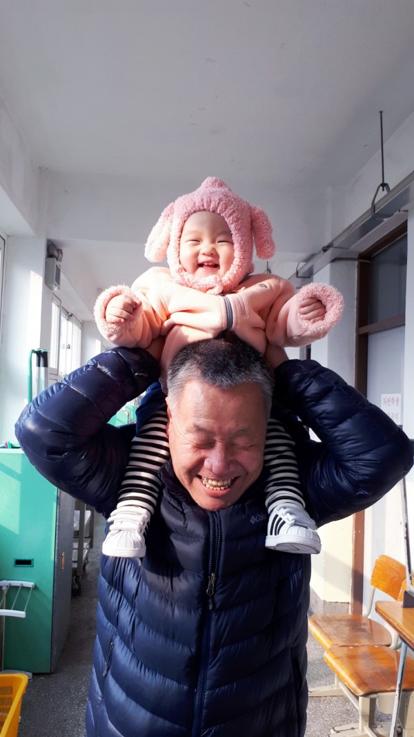 첫번째 사진은 시아버지도 폐암치료를 새로 받으며 정신적으로도 육체적으로도 힘드셨을 때지만 손녀 축복이에게 목마를 태워주시며 너무나 즐거워 하는 행복한 모습 그 자체입니다. 소중한 생명으로 태어난 손녀덕분에 할아버지는 이겨낼 수 있었습니다.