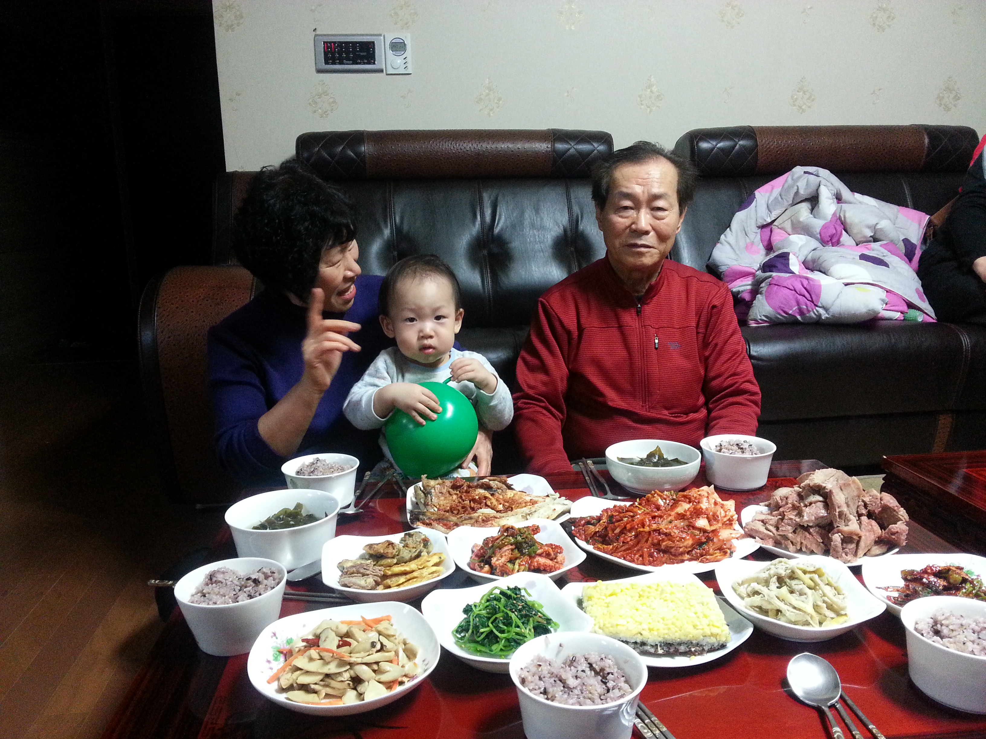 할아버지 생신상이 마치 자기 생일상인 것 처럼 한자리 차지하고 앉은