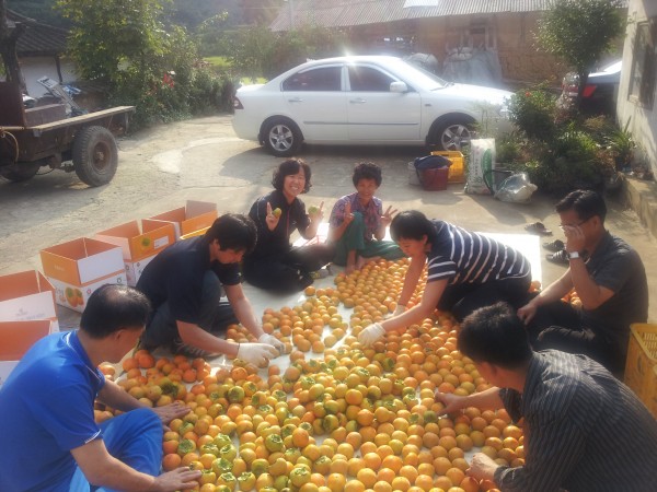 [행복사연] : 경주 안강읍 검단리에서 시어른들이 소를 키우시면서 단감농사를 조금 짓고계시는데 시아버지께서 몇년전 뇌출혈로 쓰러지셔서 이제 겨우 회복은 되어가시지만 늘 조심해야 하기 때문에 농사일이 힘이드십니다. 주말에 시어른들 단감 판매를 도와드리러 갔는데 친정 언니랑 남동생 내외가 아이랑 함께 놀러와서 모두가 힘든줄도 모르고 행복하게 웃으며 일을 했습니다. 감을 무지 좋아하는 언니는 대구에 살면서 처음으로 단감밭에 왔다고 좋아했고 3살, 4살 아이들도 단감밭에서 감도 구경하고 소도구경하고 멋진 농촌체험을 했다고 좋아했습니다. 사돈집이 어려운 집일 수도 있는데 모두 모여 함께 일하니 즐겁고 행복했습니다. 가족이란 이렇게 시댁, 친정 구분없이 모든 일에 함께 할때 행복할 수 있는것 같아요