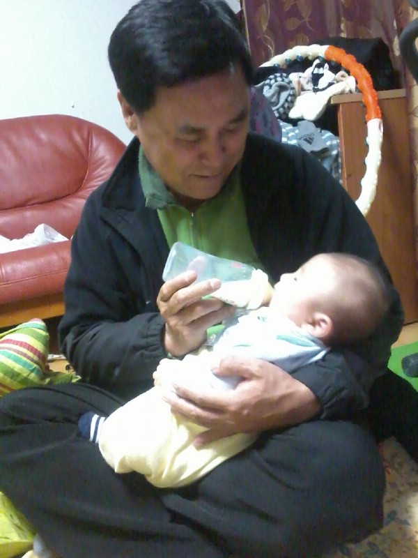 언제나 출,퇴근을 할 때마다 손주를 꼭 챙겨보시고 집을 나섭니다. 휴대폰에는 손주의 사진이 메인으로 되어있는건 당연하구요 ^^ 놀아주다가 배고파서 우는 손주에 당신이 직접 손주맘마를 주고있는 외할아버지의 모습입니다.