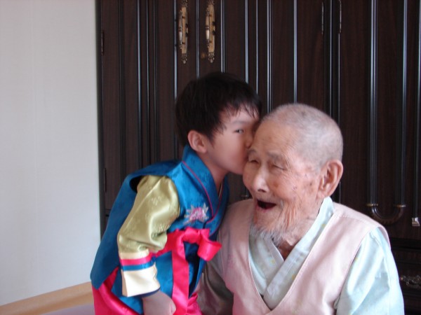 [행복사연] : 할아버지의 하얀수염이 무서웠는지 할아버지만 보면 울던 아이였는데 할아버지의 볼에 자연스럽게 뽀뽀를 하며 애교를 부립니다.