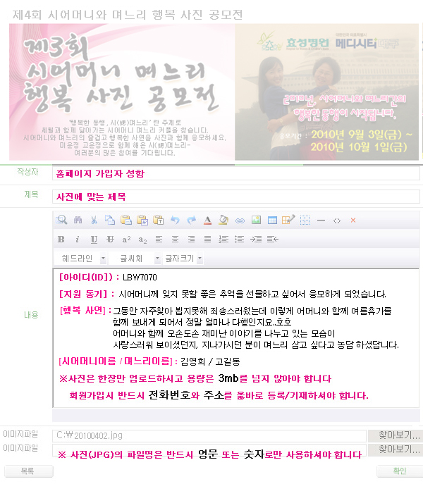 시어머니와 며느리 행복사진 공모전 | 공모전 응모방법 필독안내