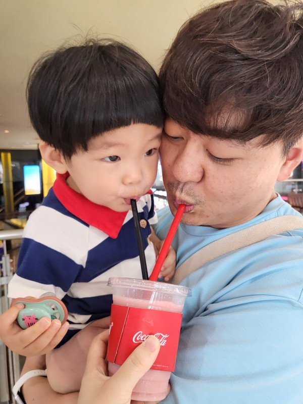 [사연] : 2023년 2월 8일, 효성병원에서 사랑하는 아들이 태어났습니다. 이제는 사랍답게(?) 빨대로 음료도 마실 수 있고 성장하는 모습이 너무 신기하고 사랑스럽습니다. 아빠와 아들의 생과일 쥬스 러브샷 장면을 공모해봅니다 ㅎㅎ