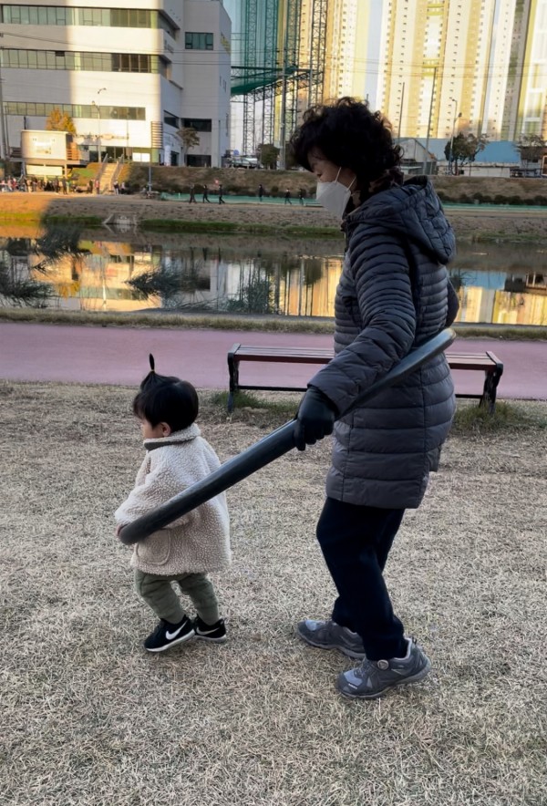 외할머니와 칙칙폭폭 (집근처 체육공원에서 외할머니와 칙칙폭폭 훌라후프 기차놀이를 했습니다)