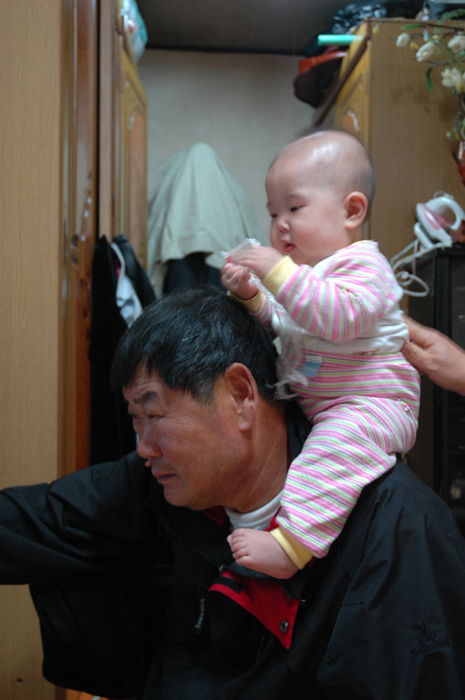 할머니께서 할아버지 어깨위로 무등을 태우셨네요 ㅎ