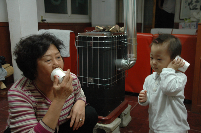 그 모습이 귀엽다고 난로위에 손녀 위해 고구마도 구워주시는 할머니~~