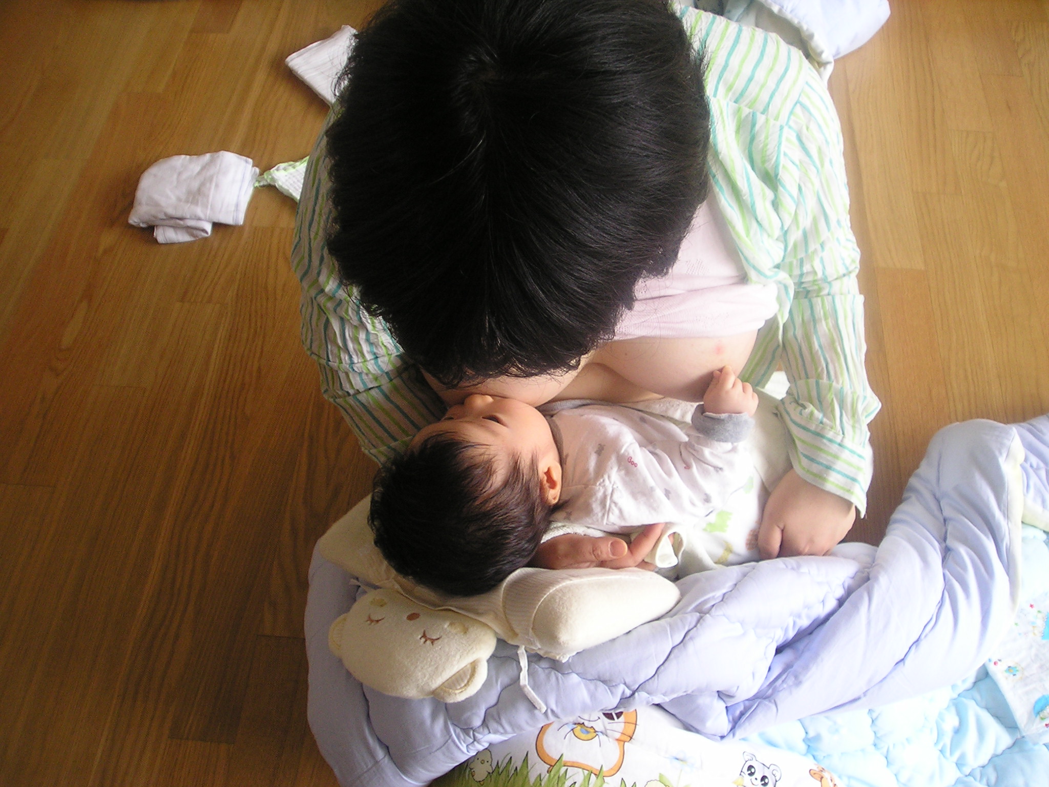 모유수유 경험담 : 1월 8일(화)이 예정일이었는데 1월 7일(월)까지 출근해서 업무처리하고 아무이상이 없어 다음날엔 내진 받고 출산휴가를 내어야지 했는데,,,웬일이니,,퇴근길에 양수가 터진 것 같아 저녁을 대충 먹고,,저녁8시까지 병원가서 검사하니 양수가 터졌다네,,입원하고 새벽6시에 촉진제 맞자고 하시 길래 11시까지 기다려도 아무 진통도 없어 신랑이랑, 언니랑, 모두 집으로 보내고 침대에 누워 기다리는데,,,난 진통도 없고,,,주변에서는 아프다고 야단이고,,공포 분위기,,,분만실 분위기에 더 겁이 많이 났던 것 같다,, 밤 12시부터 아프기 시작하더니 열심히 오리걸음하고, 움직인 덕분에 새벽 6시에 50%,,,,촉진제 맞지 않고 그냥 낳자고 하고 계속 움직이며 운동,,(MP3 주머니에 넣고 음악크게 들으며 움직이니 진통도 참을 만 했다),,아침 8시쯤 너무 아파 무통 맞을 수 있냐고 물었더니,,무통은 진통 전에 해야 한다고,,,,어쩌스까이,,쌩으로 참는 수밖에,,이래서 무식하면 손발이 고생이라고 했던가,,,) 울다 지쳐 잠에서 깨서 계속진통 ..오전 10시쯤,,,90%이상 열렸으니 조금만 힘내라고,,그래도 옆에 신랑이랑,,언니랑 있어서 위로는 되었지만 힘주기는 혼자 한 덕분에 얼마나 팔이 아프던지,,분만실로 옮겨서 오전 10시 19분,,,3.46Kg...의 건강한 남자아이를 낳았다,,,처음으로 안아보라고 하여 아들을 안는 순간 나를 향해 쌕 ~웃는 모습이 너무도 사랑스러웠다. 모유수유를 하려면 출산하고 바로 모유를 먹여야 한다고 들었는데 그날은 젖을 먹이지 못하고 다음날 아침부터 먹이라 했다.모유시간,,,,아들을 품에 안고 젖을 먹이는데 영 모유 자세가 안나온다,,(옛날에 엄마가 동생 젖을 물릴 때는 젖도 잘 나오고 잘 빤 것 같았는데) 그래도 입을 오물거리며 젖을 찾아 빠는데 느낌이 이상했다,, 10분정도 먹이는 연습만 했는데 아이를 데리고 가버린다,,,아쉬웠다,,,,오후에 다시 젖을 물릴 때는 좀더 열심히 마음은 급하지만,,,기본수유자세에 충실하려고 노력하며 젖을 물렸다,,살짝 젖을 짜보니 젖에서 물 같은 것이 나온다,,그것이 젖인가 보다,,,신기했다,,,수유하는 것 기념하기 위해 간호사님께 부탁해서 사진도 찍었다,,수유장면이랑,,,애기 안은 모습을,,,자연분만한 덕분에,,2박 3일 병원에 있다가 퇴원을 했다,,,촉진제도 맞지 않고 무통분만도 하지 않은 덕분에 몸 회복이 빠른 것 같다,, 산후조리원에서 몸조리를 할 까도 생각했었는데 겨울이라 농사짓는 엄마랑 작은언니가 도와준다고 해서 집에서 산후조리를 했다,,밤낮으로 시간 맞추어 미역국이랑,,,호박이랑,,,보약이랑,,,가져다주시는 친정엄마덕분에 밥도 잘 먹고 몸도 편했다,,퇴원하고 2틀 정도 아들 젖을 물리는데,,아이가 젖을 잘 물지 않는다,,젖도 땡땡하고 불어서 아이가 젖꼭지를 물지 못하는 것 같다,,계속해서 우는 아이를 달래며 어린 것을 젖을 물리는데 먹지는 않고 울기만 한다,,,젖을 물리기 위해 얼마나 용을 썼는지,,,몸에 땀띠가 난다,,목도 아프고,,아이가 너무 작아서 베개위에 올려놓고 베개를 잡고 젖을 물렸다,,모유자세가 올바르지 않아서 못 먹이는 것 같아 육아백과 책도 읽고, 인터넷에서 모유자세도 검색해서 이렇게,,저렇게 해보는데 영,,,,젖을 못 빨고 울기만 한다,,,어린 것이 우는데 마음이 아파서 병원에서 먹이던 분유를 타서 아이에게 먹였다,,,모유 주려고 노력하니 목도 아프고 다리도 아픈데,,,분유를 먹이니 구지 엄마인 내가 먹이지 않아도 되고,,신랑이랑,,친정엄마,,작은언니가 ,,,시어머니까지 서로 먹이시려하니 내 몸은 편한 것 같아 모유 안 되면 분유 먹여야지 하는 생각도 든다,,그래도 엄마나이 36살,,아빠나이 40살, 늦게 결혼해서 낳은 우리 아들 튼튼하고 건강하게 키우려면 모유가 좋다고 하니 우째든동 모유를 먹이려고 유축기로 젖도 짜고 따뜻한 수건으로 마사지도 하고 해도 아이가 잘 먹지 못하고 젖도 잘 안나온다,,,유축기로 젖을 짜니 젖이 너무 아프다,,친구들에게 전화를 해서 모유를 먹이려면 어떻게 하냐고 물었더니,,애기가 젖을 못 빨면 신랑이 젖을 빨아서 부드럽게 해야 한단다,, 같이 근무하던 직원은 시어머니가 젖을 빨았다고 하던 말 도 생각나서 신랑보고 빨라고 했더니 잘 못한다,,,도움이 안 된다,,,병원 퇴원하고 2틀이 지났는데도 아이가 거의 모유를 먹지 못해 포기를 하고 싶었다,,,친정엄마가 젖을 손으로 꼭꼭 주무르고 양손바닥으로 젖을 굴리면서 멍울이진 가슴을 풀어주었다,,무지 많이 아팠지만 꾹~참고 한참을 하고 나니 젖이 조금 물러진 것 같았다,,,젖먹이기 전에 양손바닥으로 젖을 둥글게 풀어주고 먹이라고 해서 그렇게 했더니 젖을 조금씩 물기 시작하더니 빨기 시작했다. 역시 시작이 중요한 것 같다,,그렇게 먹기 시작하더니 이제 3개월 다 되어 가는데 완모중이다,,,지금은 가만히 있어도 시간이 지나 젖을 물리지 않거나 유축기로 짜지 않으면 옷이 흠뻑 젖을 정도로 젖이 줄줄 흘러내린다,,, 90일 출산휴가를 마치고 4월 7일(월) 부터는 출근을 해야 하는데 걱정이다,,,출근해서도 젖을 먹이기 위해 출근하고 젖짤 수 있는 시간을 허락해 주십사,,,사무실 과장님과 직원들께 말씀드